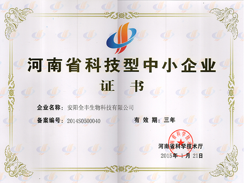 2015年度榮獲“河南省科技型中小企業(yè)”