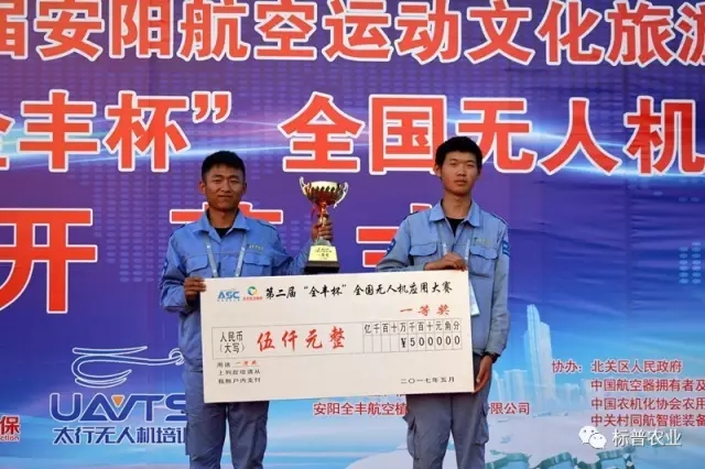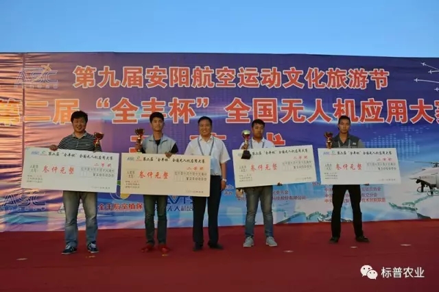 隨后進(jìn)行的無人機(jī)應(yīng)用大賽更是扣人心弦,引人入勝。大賽邀請18家全國各知名無人機(jī)企業(yè)參賽。比賽內(nèi)容為農(nóng)用植保無人機(jī)在作業(yè)時要求飛行軌跡精準(zhǔn),指定飛行高度和指定飛行速度情況下沿預(yù)定軌跡進(jìn)行噴灑作業(yè)時方能滿足作業(yè)要求,達(dá)到噴灑效果。參賽的無人機(jī)根據(jù)要求的速度、高度作業(yè)完畢后,由測量系統(tǒng)實(shí)時給出該架次作業(yè)軌跡的飛行參數(shù),計(jì)算出該架次飛行的速度偏離度和高度偏離度,綜合二者分?jǐn)?shù)后對該參賽無人機(jī)進(jìn)行排名。經(jīng)過激烈角逐,河南標(biāo)普農(nóng)業(yè)科技有限公司和安陽全豐航空植??萍脊煞萦邢薰?/span>分獲一、三等獎。