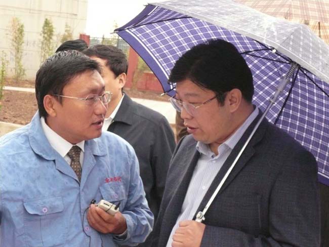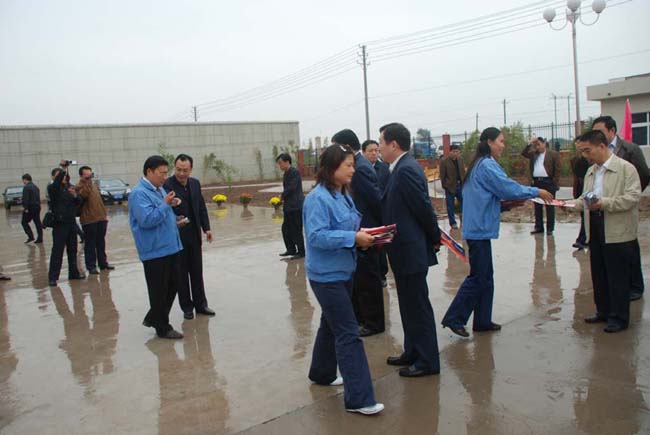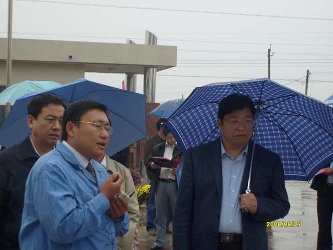 2008年9月27日上午,安陽(yáng)市委書(shū)記張廣智、市長(zhǎng)張笑東和市政協(xié)主席趙微等領(lǐng)導(dǎo)率領(lǐng)市有關(guān)部門(mén)一行人冒著霏霏細(xì)雨到我公司考察指導(dǎo)工作。