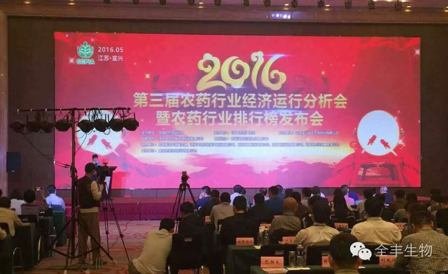 2016年5月11日,第三屆農(nóng)藥行業(yè)經(jīng)濟運行分析會暨農(nóng)藥行業(yè)排行榜發(fā)布會在江蘇省宜興市成功召開。