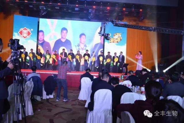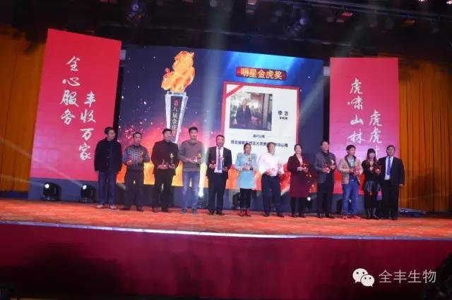晚餐過后,激動人心的時(shí)刻到來了,一年一度的“金虎獎”頒獎盛典正式開始。向長期以來支持安陽全豐技術(shù)服務(wù)工作的單位和個(gè)人頒發(fā)“金虎獎”,并向業(yè)務(wù)突出的銷售精英頒發(fā)獎品。榮譽(yù)承載著辛勤的歲月,勇往直前是我們當(dāng)下的腳步。2017年我們來了,我們相信未來是屬于“全豐家人們”的未來,2017年“再創(chuàng)新高”。