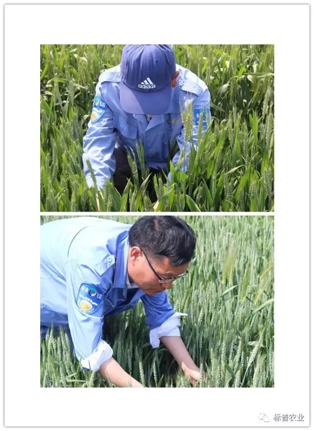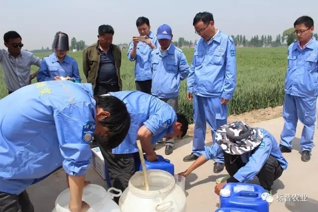 藥劑督察組是流動(dòng)的工作狀態(tài),來(lái)到第二個(gè)作業(yè)點(diǎn),飛機(jī)正在等藥,小組成員們直接下地勘察病情,烈日下,大家沒(méi)有一個(gè)人叫苦叫累。一番調(diào)查之后發(fā)現(xiàn)這里的小麥病情較輕,但是也有條銹病和赤霉病的發(fā)生。當(dāng)老鄉(xiāng)把水和藥品拉到作業(yè)現(xiàn)場(chǎng),督察組嚴(yán)格按照作業(yè)標(biāo)準(zhǔn)監(jiān)督作業(yè)小組配藥,并對(duì)作業(yè)過(guò)程中不標(biāo)準(zhǔn)的地方提出指導(dǎo),督察小組的意義是不能因?yàn)橐晃兜淖非笞鳂I(yè)效率而忽略質(zhì)量,工作就是相鋪相成的。