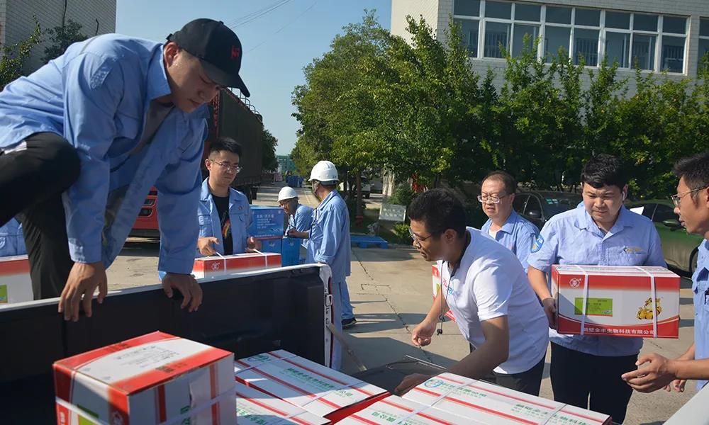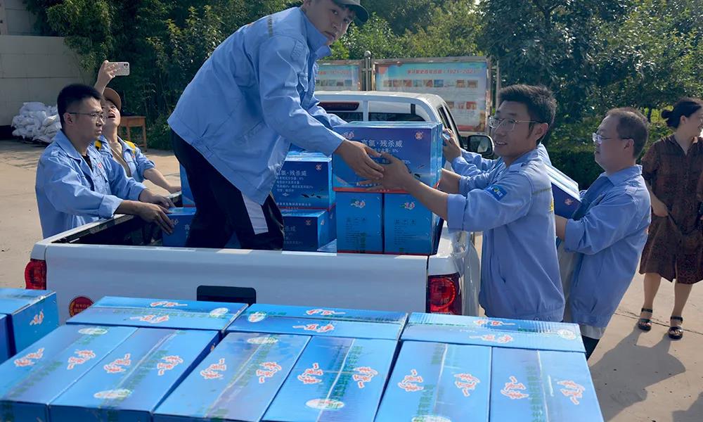 安陽全豐在自身蒙受財產(chǎn)損失的情況下,不忘企業(yè)使命,勇于承擔(dān)社會責(zé)任,心系受災(zāi)地區(qū),開展生產(chǎn)自救的同時,公司董事長、總經(jīng)理王志國第一時間帶領(lǐng)員工積極籌措物資,緊急行動起來,聯(lián)系湯陰縣、安陽縣、北關(guān)區(qū)、文峰區(qū)當(dāng)?shù)丶t十字會,向受災(zāi)嚴(yán)重地區(qū)捐贈施必達(dá)、金處方、S誘抗素、“蚊蠅一夏凈”等物資將近50余萬元,并免費提供配套的無人機(jī)消殺服務(wù)。